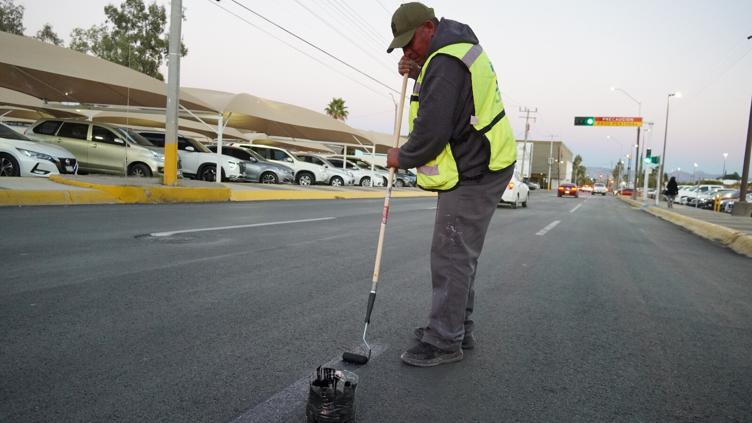 La dependencia detalló que la tarde de ayer comenzaron los trabajos para rectificar la pintura divisoria de carriles, en el tramo que abarca desde la calle Rinconada San Felipe hasta el bulevar Ortiz Mena.