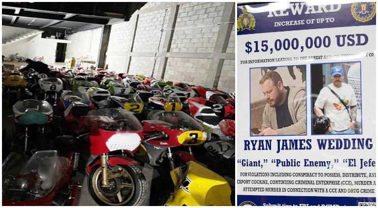 En los domicilios hallaron dosis de metanfetamina y marihuana, 62 motocicletas de alta gama, dos vehículos, obras de arte, dos medallas olímpicas, cartuchos, un cargador y diversa documentación.