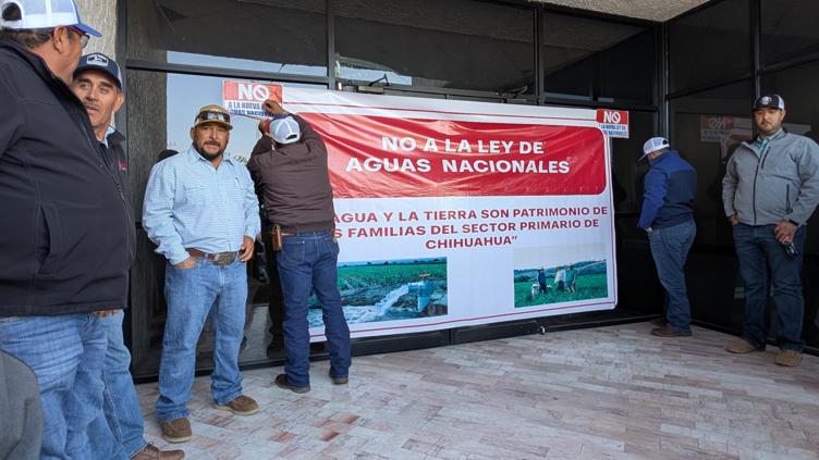 Agricultores de diversos municipios de Chihuahua se manifestaron pacíficamente este martes afuera de las instalaciones de la Comisión Nacional del Agua (Conagua) en la entidad.