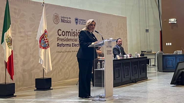 La gobernadora del Estado de Chihuahua, estuvo presente en la Comisión Presidencial para la Reforma Electoral en la capital, misma que se realizó en el Museo Semilla. Ahí, en su discurso, resaltó la necesidad de que "la voz de Chihuahua sea escuchada", y que una reforma electoral se debe de construir en consenso.
